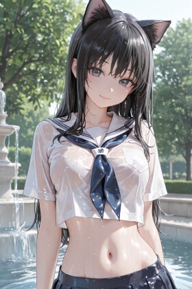 猫耳JKと噴水で|
